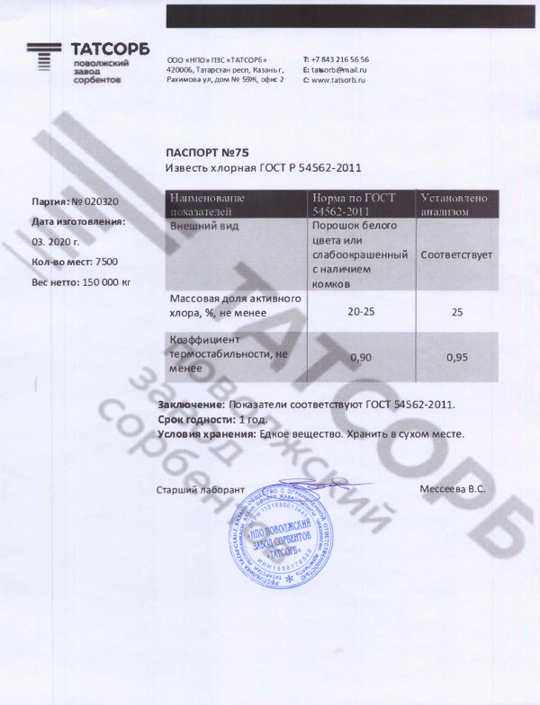 Хлорная известь, купить в Минске которую предлагает компания ООО «ХТСБел» - это смесь оксихлорида, двухосновной соли гипохлорита кальция, хлорида и гидроксида кальция. Внешне представляет собой белый порошок неоднородной структуры. Образуется в результате взаимодействия хлора и гашеной извести.